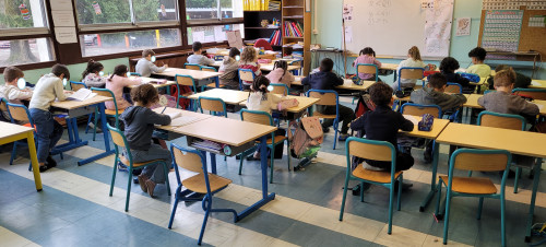 Ce matin un groupe de CE2 est venu lire à voix haute à la classe de CP. Que c'est motivant pour les plus jeunes et quelle fierté pour la maîtresse d'entendre ses anciens élèves aussi à l'aise !